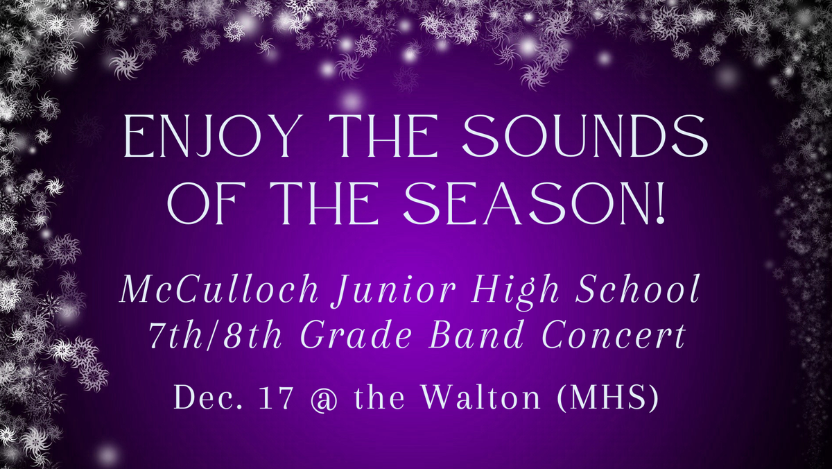 McCulloch Junior High School's seventh- and eighth-grade bands will combine for a special concert at 6 p.m. Dec. 17 at the Walton Performing Arts Center at Marion High School.